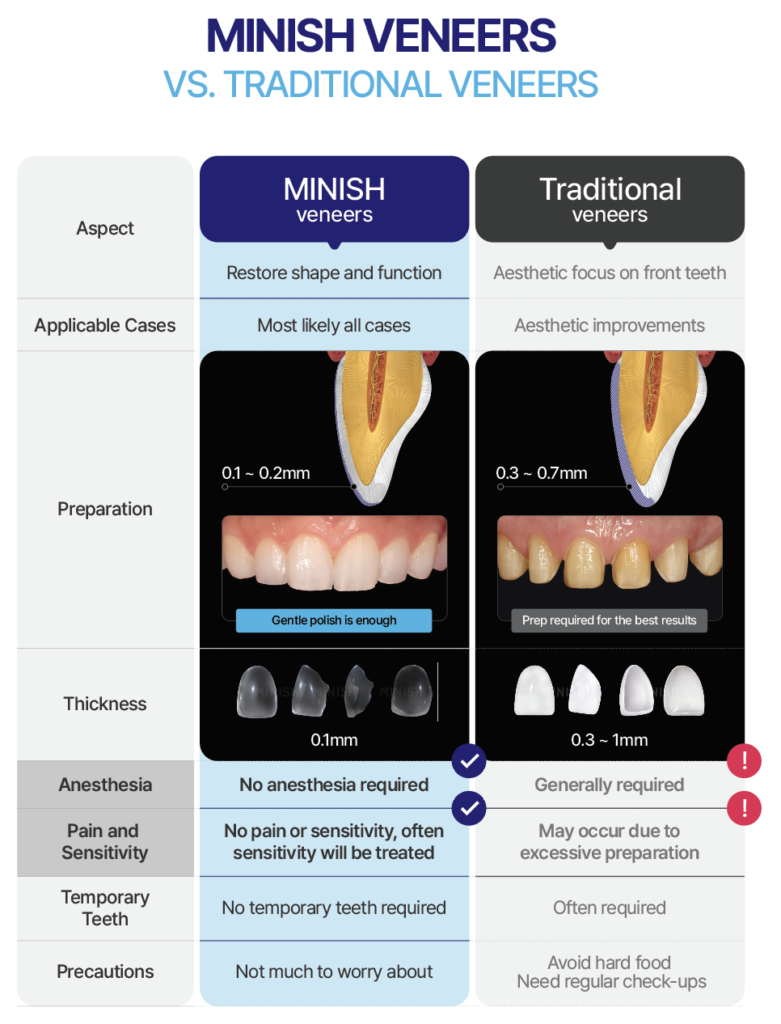 MINISH Veneers offer a seamless, permanent solution for restoring teeth and creating perfect smiles without the need for tooth shaving or removal.