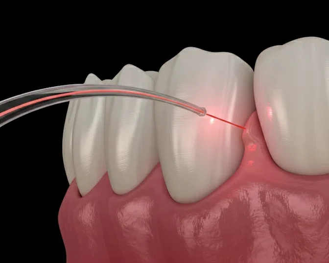 Precision Targeting: A tiny laser fiber, about the width of three human hairs, is inserted between the gum and tooth.